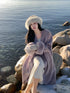100% wool drawstring waist double-faced wool coat for women in winter with detachable fox fur cuffs